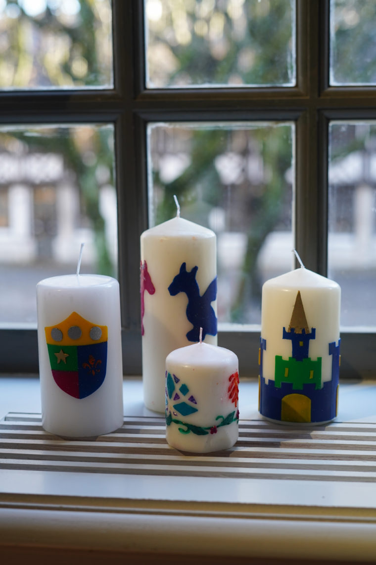 Dans cet atelier lumineux, les enfants se transforment en apprentis magiciens. Avec des pinceaux et beaucoup de créativité, ils transforment une simple bougie en une véritable pièce décorative inspirée du Moyen Âge : blasons, châteaux forts, vitraux, couronnes…Chaque enfant repart avec sa création personnalisée, prête à éclairer les soirées d’hiver.